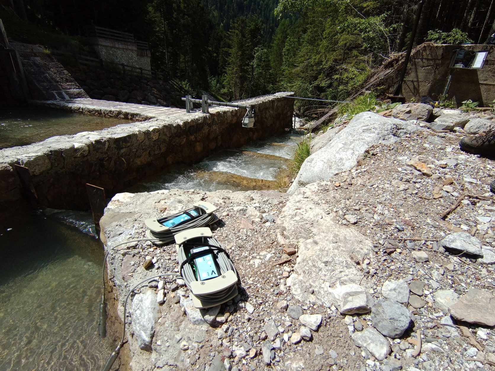 In the present situation, the ponds of the fish ladder are very short, creating very difficult flow conditions. Thus, additional salt tracer measurements are performed to verify the water flow monitored by the SQ-R.