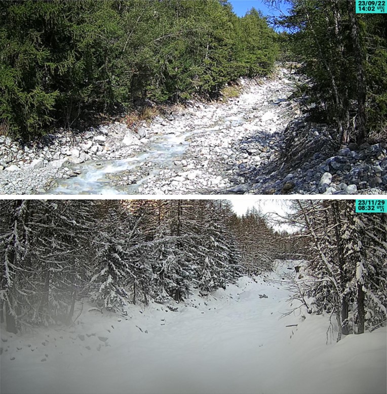 Die ADMS-Abfluss-Kompaktstation wurde am Ende des rechten Gletscherlappens des Planpincieux-Gletschers installiert. Die gemessenen Daten werden verwendet, um den Wasserhaushalt des gesamten Einzugsgebiets zu bewerten und um eventuell die vom Gletscherkörper zurückgehaltenen Wassertaschen zu identifizieren.
