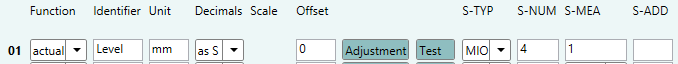 To read data strings in MIO-format Measurement table has to be configured as follows: