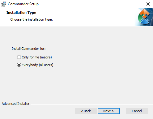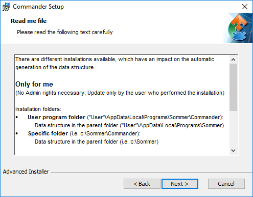 NOTETwo installation types are available. Depending on the selection, the access rights and the folder structure differ: